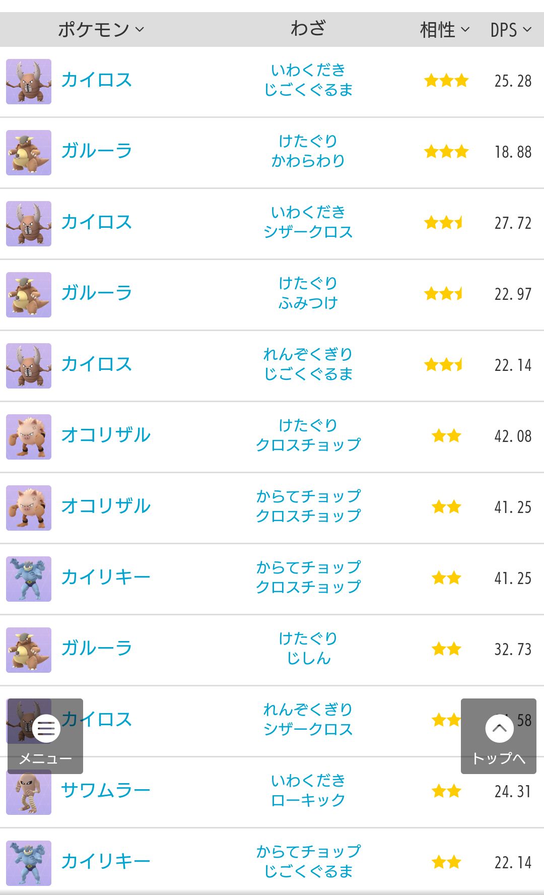 GOFEST札幌で複数の特別イベントが開催! ヒスイイベントの開催が決定! 詳細はこちら 8月のコミュニティデイ詳細が発表! 対戦個体値ランクチェッカーが複数スクショに対応! レイド招待ツールでレイドバトルに挑戦しよう! ポケモンGOで22年に開催 技組合せ診断ツールの複合タイプチェック機能追加について 16年12月12日 09時12分 しゃちおつ〜ぺんです。 今回、技組合せ診断ツールを大幅機能改良したので、紹介します。 今まで入力した技に対して単タイプに対する判定のみ可能でしたが、今回から 対戦個体値ランクチェッカーが複数スクショに対応! レイド招待ツールでレイドバトルに挑戦しよう! ポケモンGOのGOFESTシアトルに合わせて配布されているコレクションチャレンジ「GOFESTシアトルオアシス」の内容と報酬をまとめています。 タスク内容
